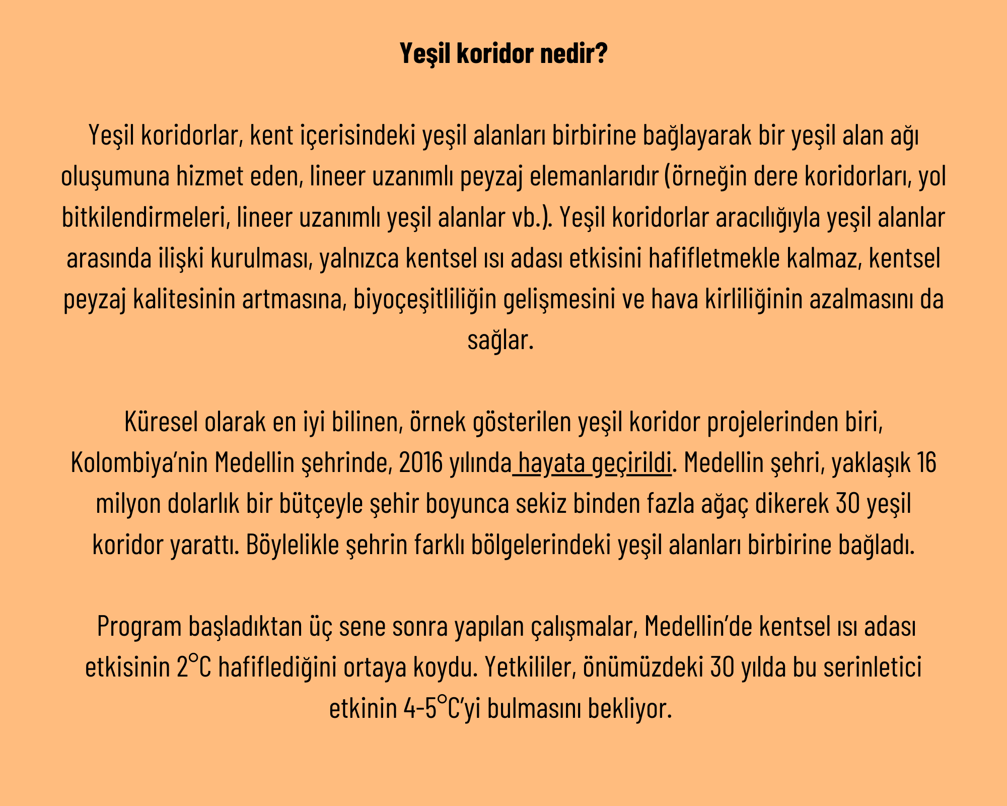 ‘’İstanbul’da özellikle kuzeydoğudan gelen rüzgarları uygun şekilde yönlendirerek serinletici etkilerinden faydalanmak mümkün. Bu nedenle şehirde kuzeydoğu ve güneybatı yönünde yeşil koridorlar oluşturmak büyük önem taşıyor.’’