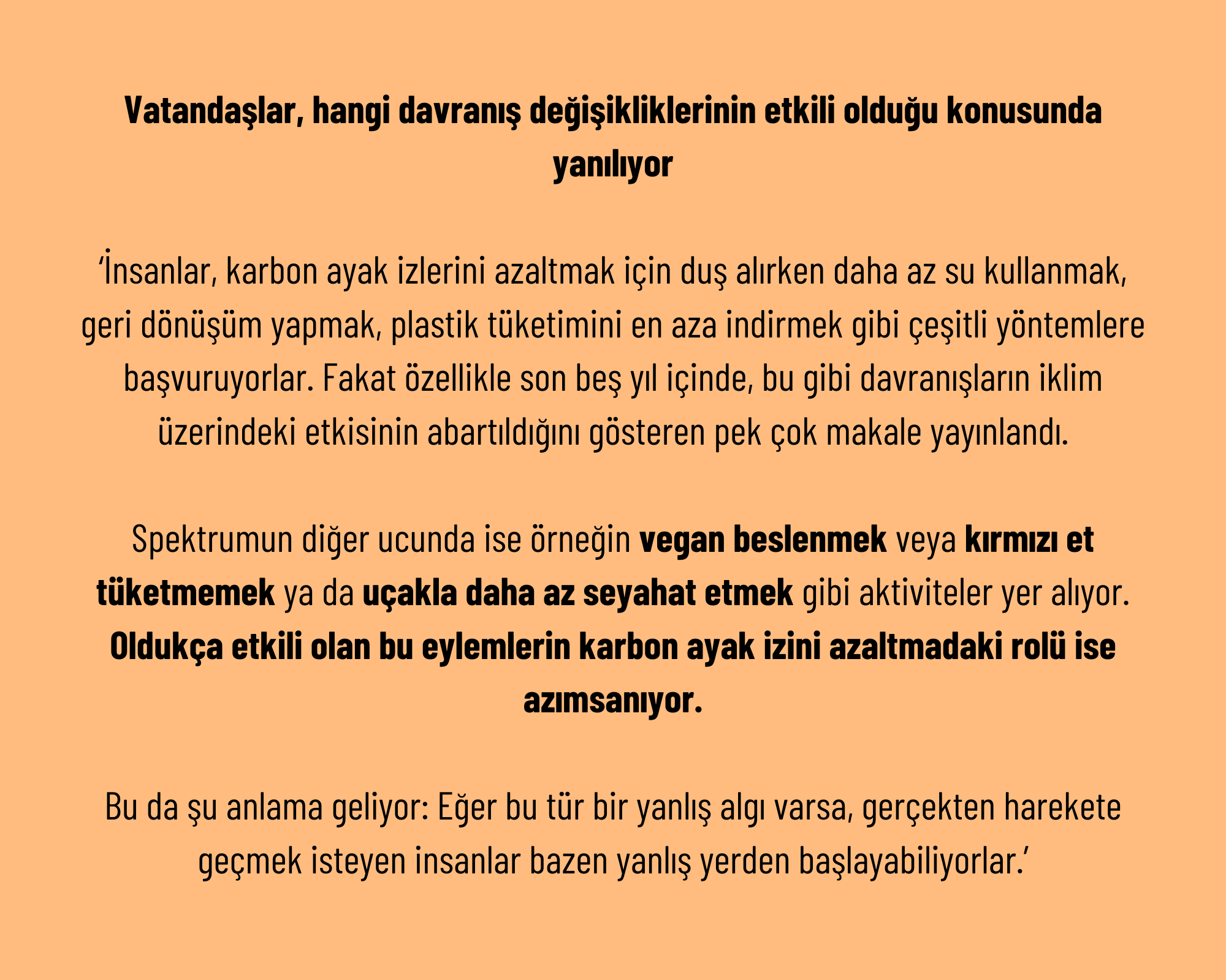 Vegan beslenmek, kırmızı et tüketmemek veya uçakla daha az seyahat etmek gibi oldukça etkili eylemlerin karbon ayak izini azaltmadaki rolü, azımsanıyor.